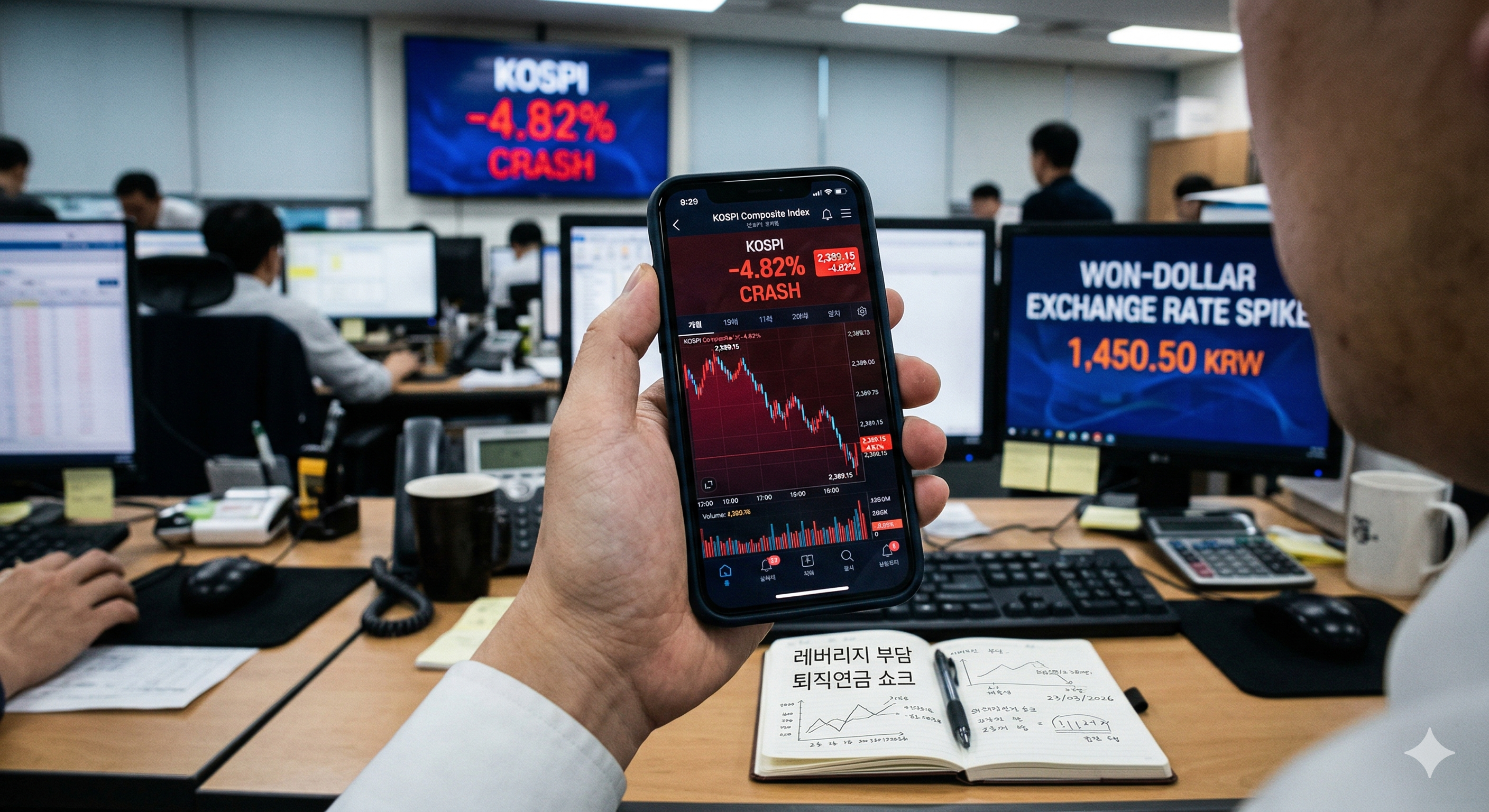 오늘 아침 출근 하시고 주식 창을 열어보고 놀라신 분들 많으시죠? 3월 23일 오전에 장이 열리자 마자 코스피가 무섭게 곤두박질치면서 순간 -6.3%까지 급락하는 충격적인 장세가 나왔습니다. 글로벌 시장 전체가 그야말로 하락으로 물든 피 말리는 하루가 이어지고 있습니다.