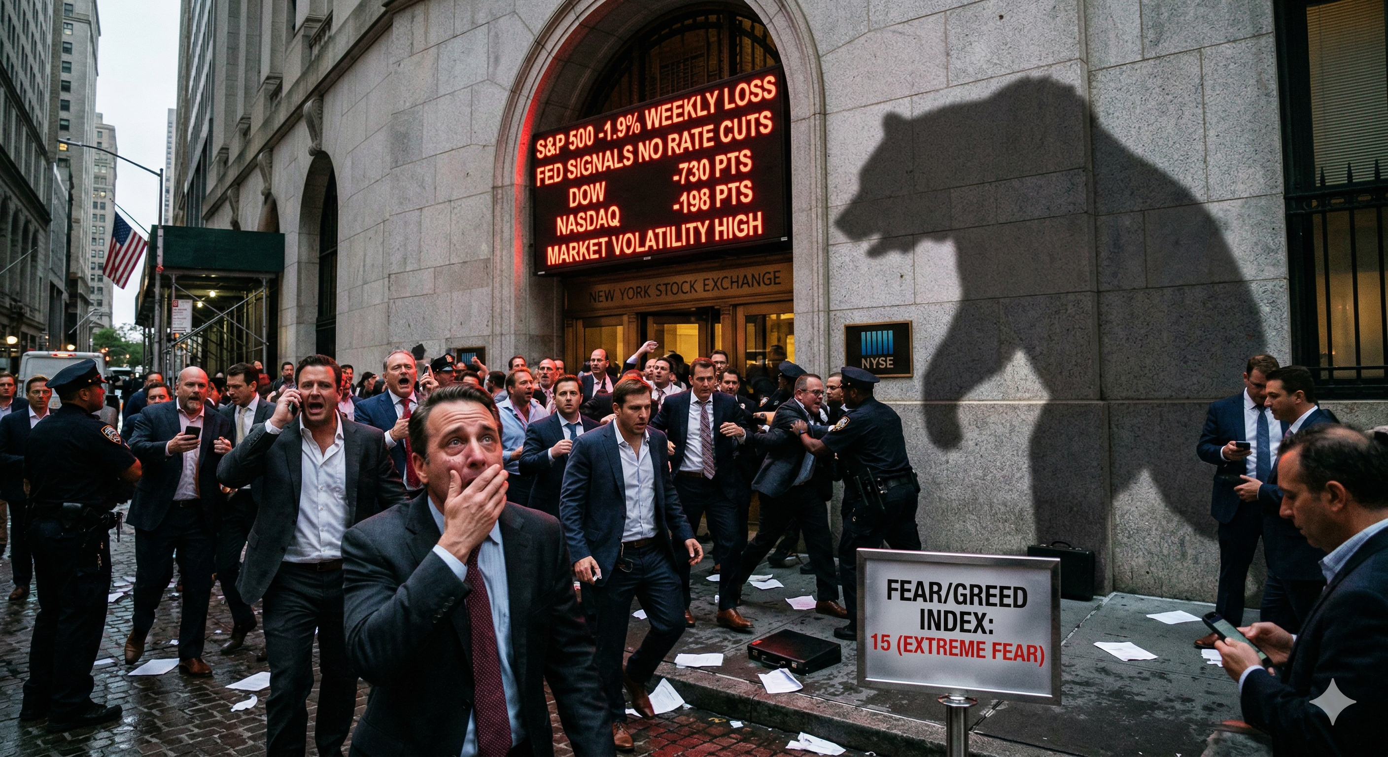 - 숫자로 보는 공포 : 시장의 ㅂ녀동성을 나타내는 VIX 지수는 27근방까지 튀어 올랐고, 시장의 심리를 보여주는 '공포.탐욕 지수'는 15수즌으로 떨어여 극단적 공포 영역에 진입했습니다. S&P500 지수 역시 1주일 만에 약 1.9% 추가 하락하며 중요한 지지선인 200일 이동평균선을 아래로 뚫고 내려갔습니다.